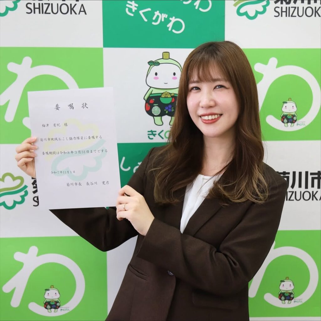 現在は菊川市の地域おこし協力隊として、SNSを活用した魅力発信や、街の玄関口である駅のリニューアルプロジェクト、さらには歴史的建造物の展示改善など、多岐にわたる活動を展開しています。東京生まれ東京育ちの彼女が、なぜ縁もゆかりもなかった菊川市を選んだのか。そして、デジタルマーケティングの最前線で培ったスキルを、地方創生の現場でどう活かそうとしているのか。静岡県菊川市を拠点に、街のファンを増やそうと奔走するうめもんさんにお話を伺いました。